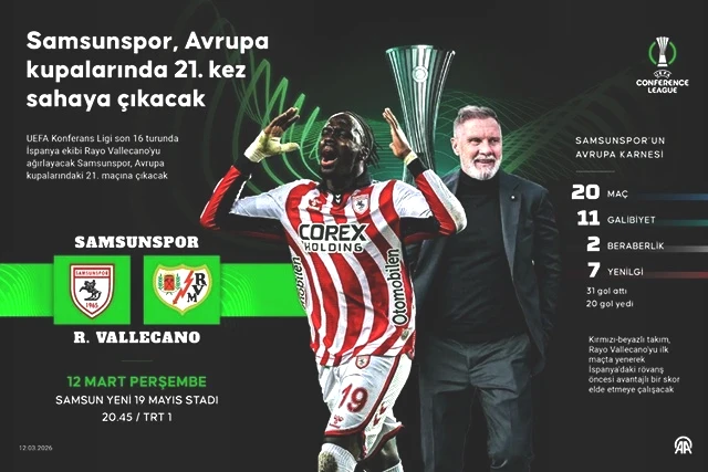 Samsunspor ile Rayo Vallecano arasındaki karşılaşma, 12 Mart Perşembe günü saat 20.45'te gerçekleşecek.